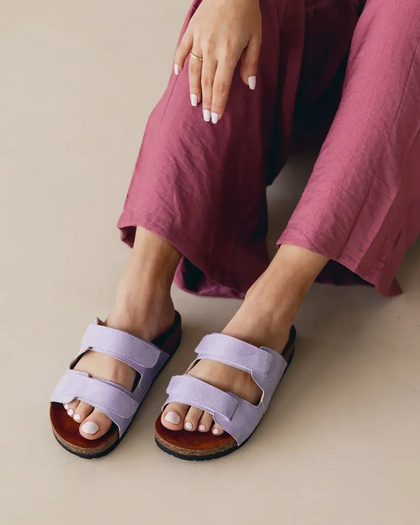 Бузкові босоніжки з подвійними ремінцями — шикарний і зручний вибір для літа. Їх ніжний колір і мінімалістичний дизайн роблять їх ідеальними для додавання нотки елегантності будь-якому вбранню. Ці босоніжки ідеальні для тих, хто цінує просте, але стильне взуття.