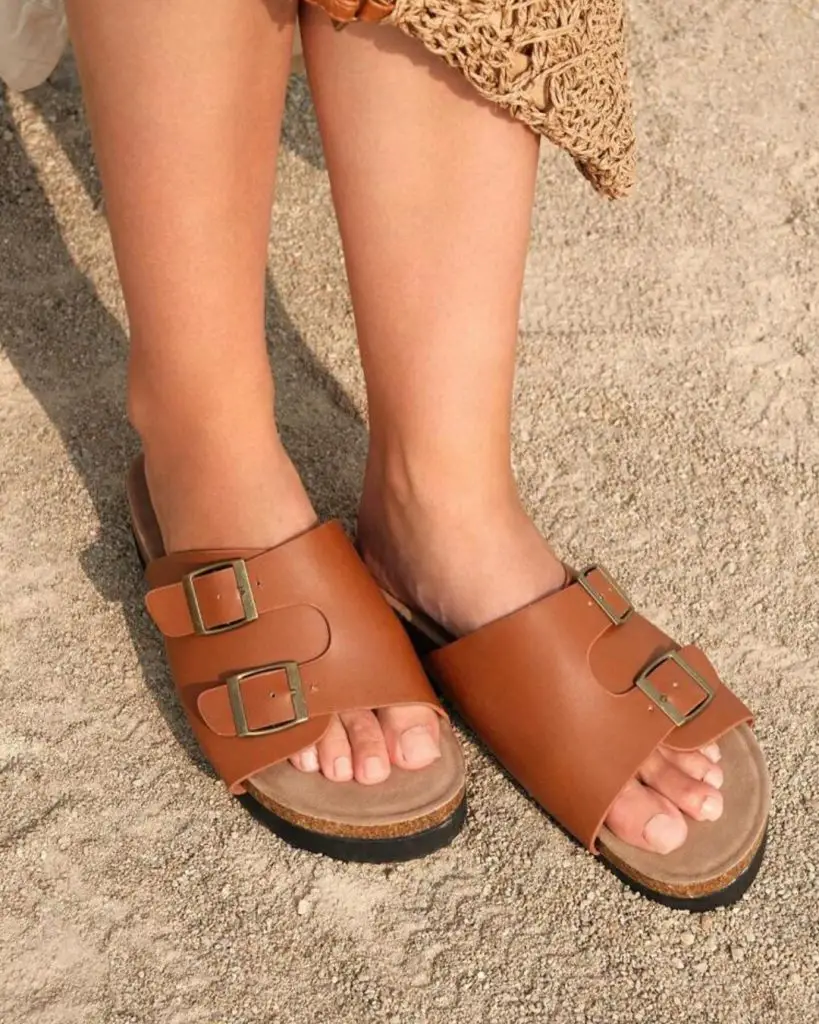 Коричневі босоніжки з подвійною пряжкою — це класичне і незмінне доповнення будь-якого літнього гардеробу. Їх простий дизайн і землистий відтінок роблять їх неймовірно універсальними, ідеально підходять для різних нарядів. Ці босоніжки чудово підійдуть тим, хто цінує невимушений і природний вигляд.