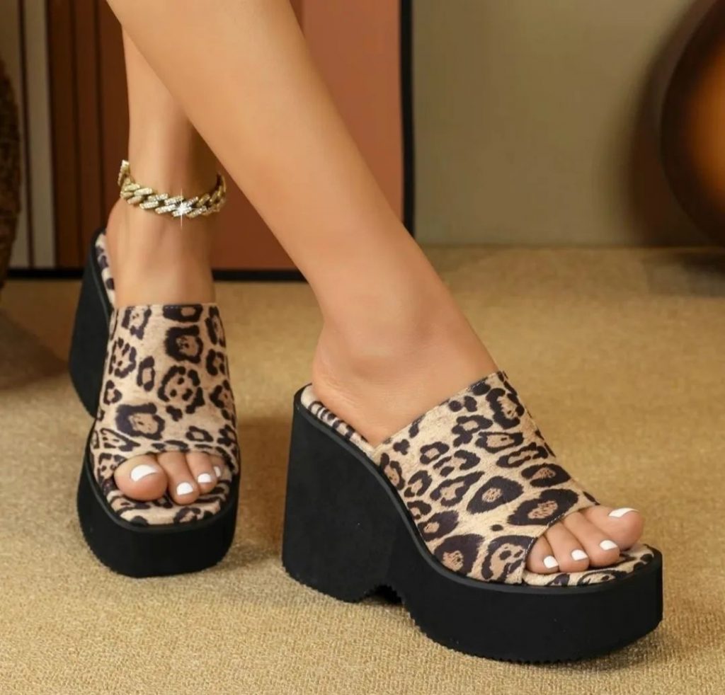 Ці босоніжки на платформі з леопардовим принтом ідеально підходять для тих, хто любить сміливі заяви. Завдяки високій платформі та тваринному малюнку ці босоніжки є модними та привабливими. Вони ідеально підходять для збільшення висоти, зберігаючи комфорт і стабільність.