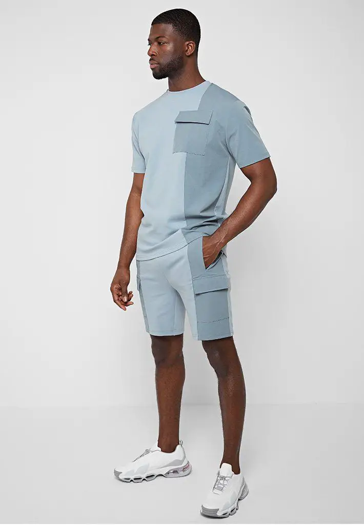 Цей одяг демонструє сучасний погляд на повсякденне літнє чоловіче спортивне вбрання. Світло-блакитний комплект одночасно стильний і зручний, що робить його ідеальним для активних літніх днів.