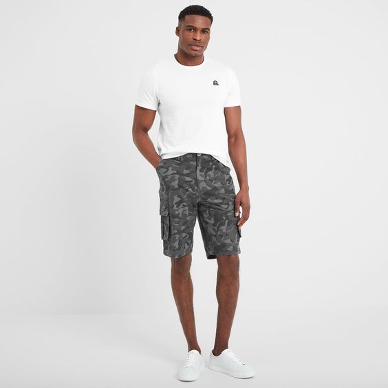 • Сірі камуфляжні шорти карго: практичні з додатковими кишенями, підходять для перенесення дрібних речей.