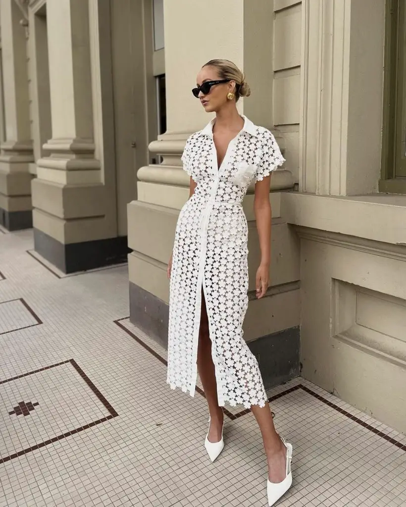 На другому зображенні чудове біле літнє плаття з мереживними деталями, яке можна описати як миле біле літнє плаття, ідеальне для більш вишуканих, але все ще повсякденних випадків.