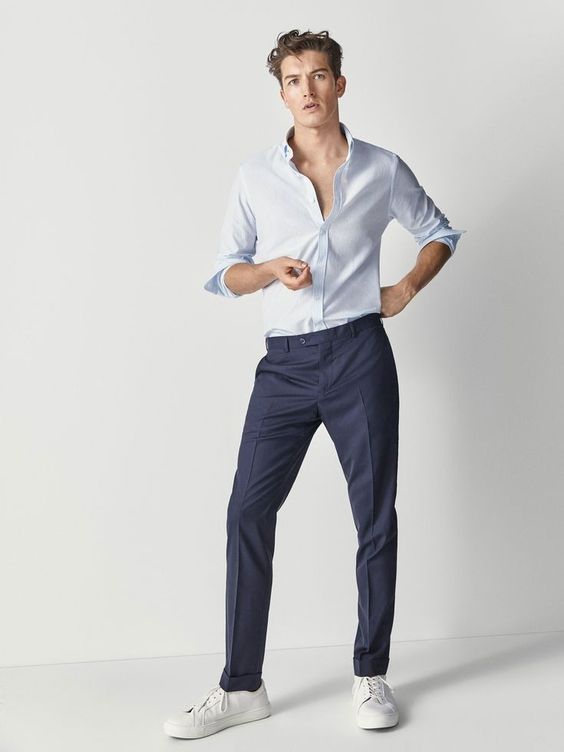 - Блакитна сорочка-поло: додає нотки кольору та ідеально підходить для теплої погоди.