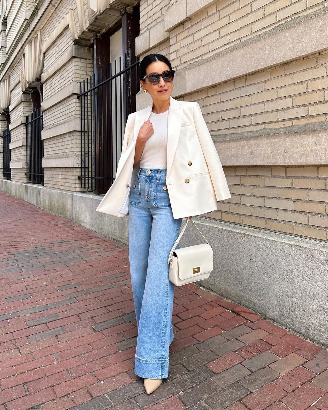 Цей одяг є універсальним і приємним для багатьох, підходить для офісного середовища в стилі casual. У той час як денім може не підійти для найформальніших робочих місць, блейзер можна легко замінити парою пошитих штанів для більш консервативного вигляду.