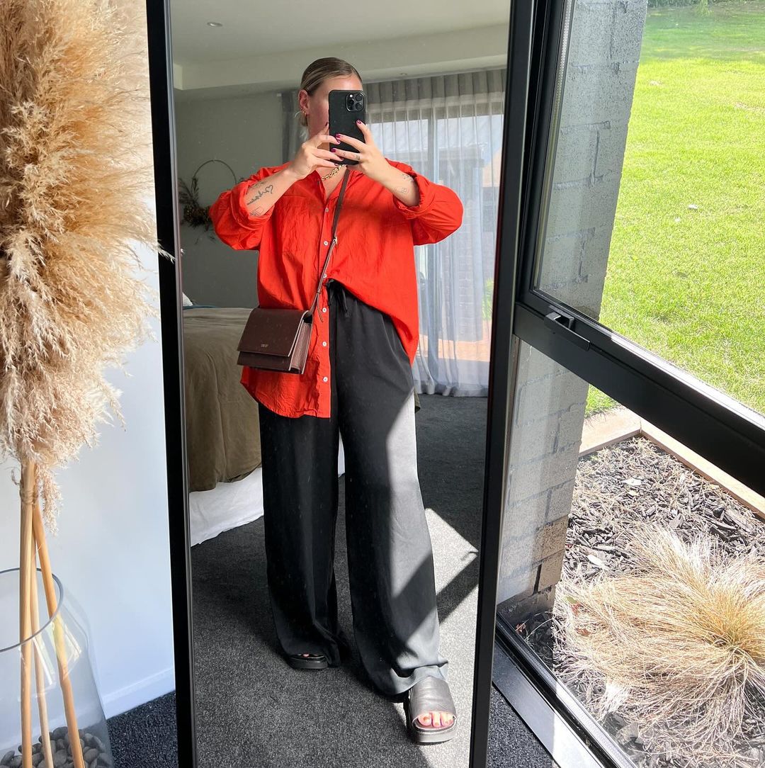 - Сорочка: яскравий помаранчевий ґудзик, який оживляє стандартний офісний одяг.