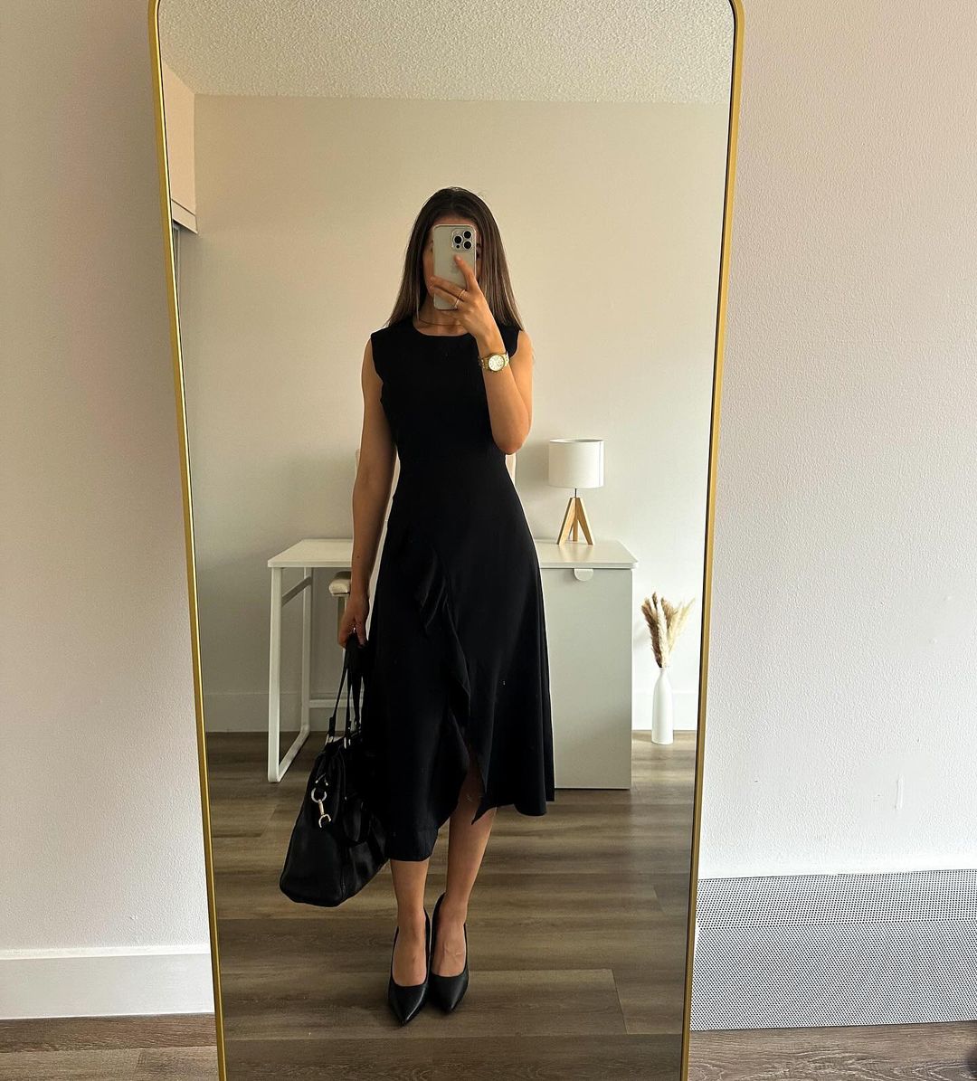 Маленьке чорне плаття (LBD) переглянуто в цьому жіночому літньому робочому вбранні. Це приклад того, як тонкий поворот до класики може призвести до створення знайомого й нового твору.