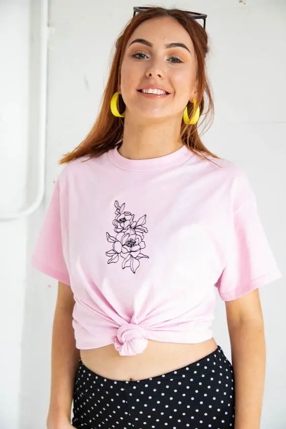 Примітка стиліста: доповніть цей топ світлими джинсами та солом’яним капелюшком для створення ансамблю на сонячний день. Краще уникати яскравих, контрастних кольорів, які можуть перекреслити ніжний характер футболки.