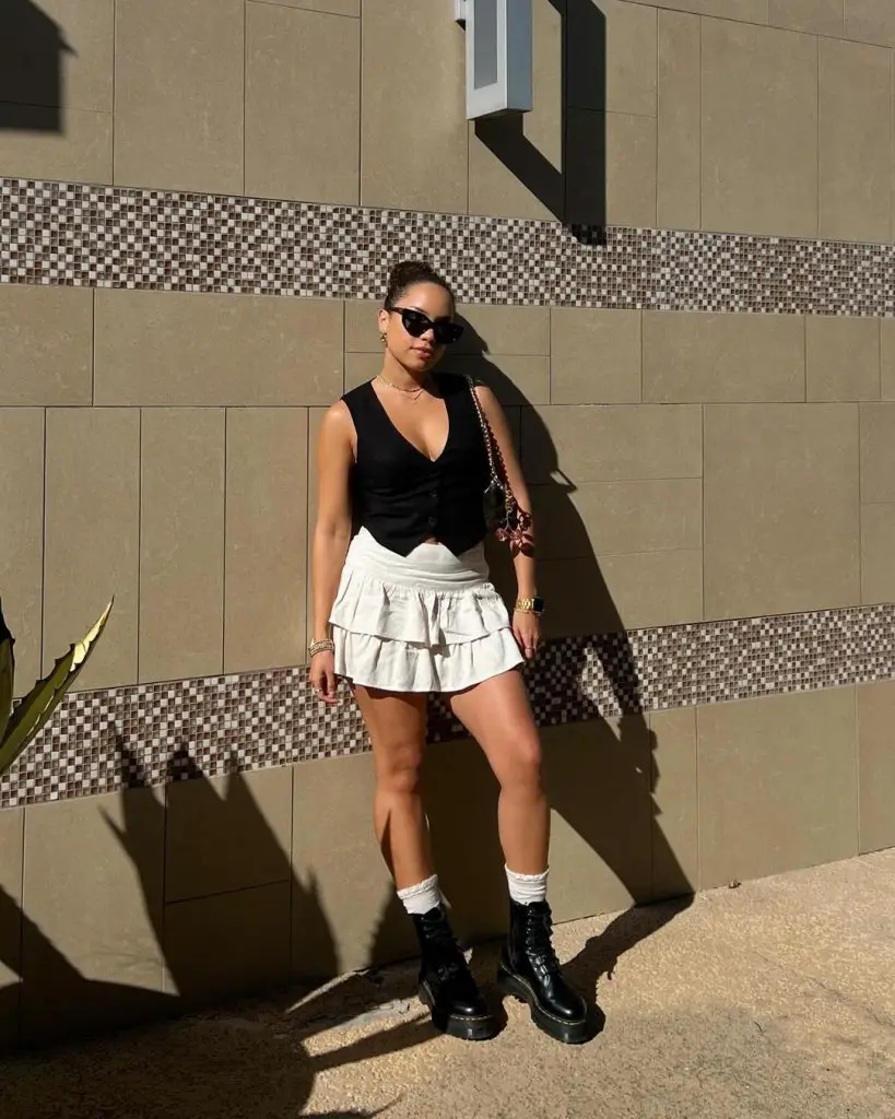 Додавання босоніжок на ремінцях доповнить легке відчуття спідниці. Краще уникати важких черевиків або темних курток, які можуть перевершити його легку привабливість.