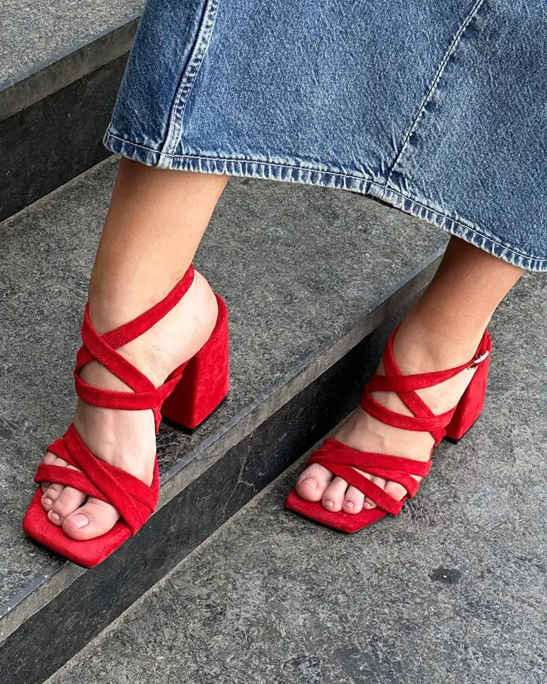 - Колір і дизайн: яскравий червоний колір і хитромудрий дизайн ремінця роблять ці туфлі яскравими.