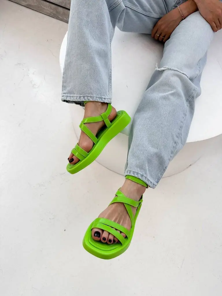 - Колір і стиль: зелений електрик привертає увагу, а дизайн сандалі пропонує стиль і комфорт.