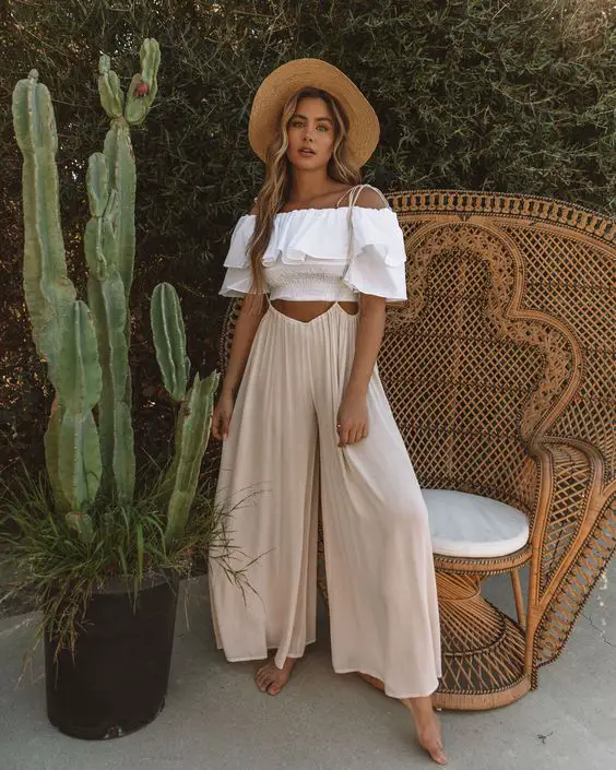 - Огляд стилю: це вбрання втілює розслаблений літній стиль бохо з його м’якою колірною палітрою та одягом вільного крою, який облягає, але не сковує.