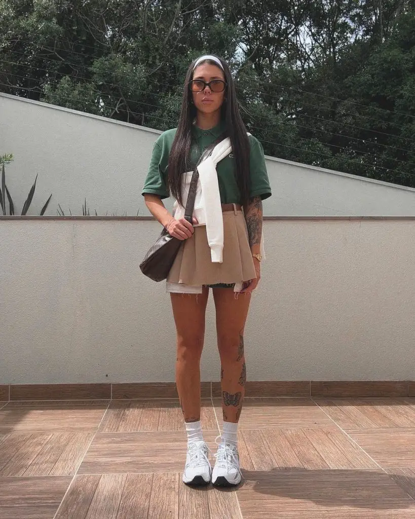 - Огляд стилю: поєднання м’якої сорочки поло зі структурованою спідницею стирає межі між повсякденним і офіційним, що робить його чудовим вибором для подорожей або невимушеної ділової обстановки.