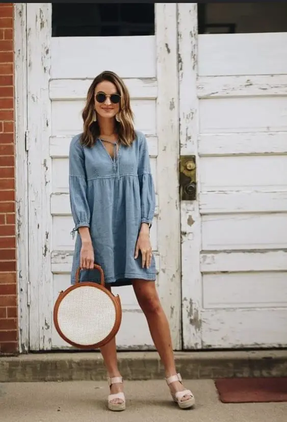 Остаточний образ поєднує в собі практичність міні-сукні з міським вуличним одягом, який підходить для літнього одягу жінок старше 30 років, яким подобається поєднання модного та функціонального.