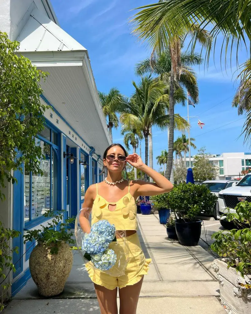 Цей сонячний ансамбль втілює в собі дух милих літніх пляжних нарядів, сповнений бадьорості та чарівності.