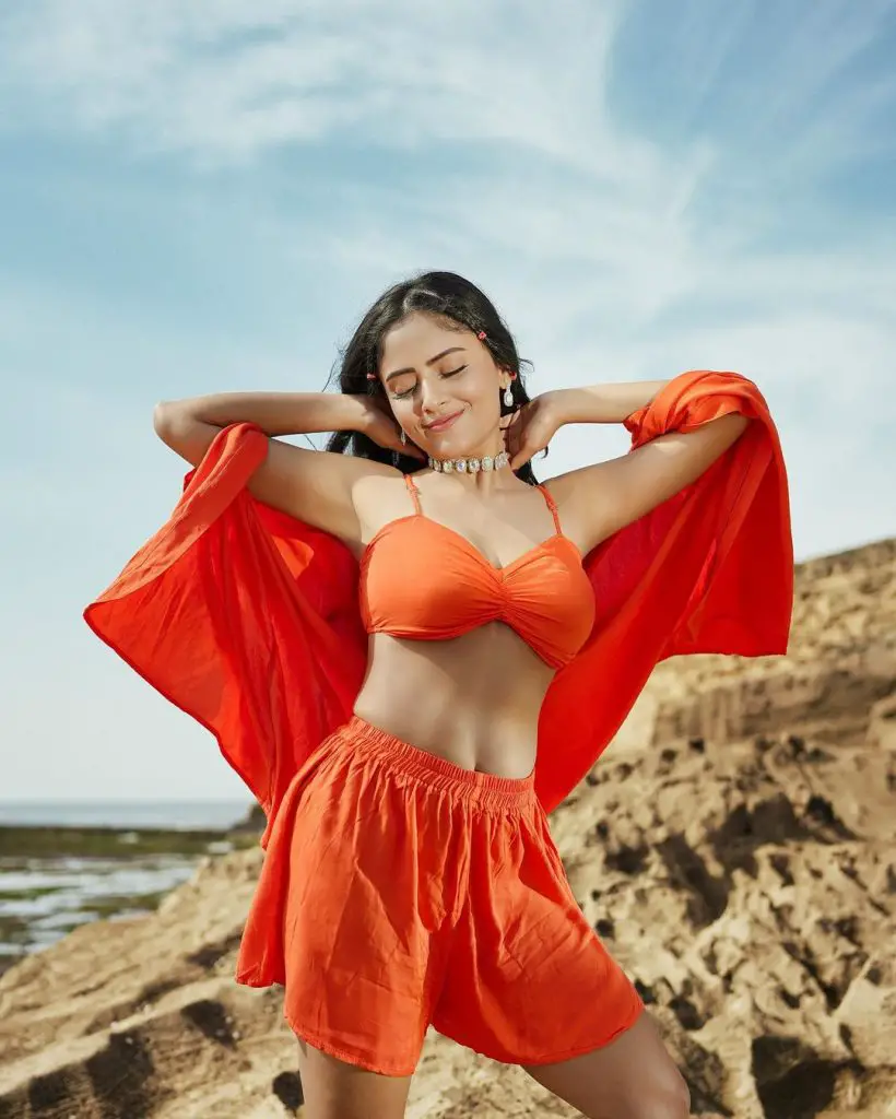 - Топ і шорти бікіні: яскраво-помаранчевий топ бікіні в поєднанні з шортами в тон створюють літню забаву, що робить його ідеальним одягом для літньої пляжної вечірки.