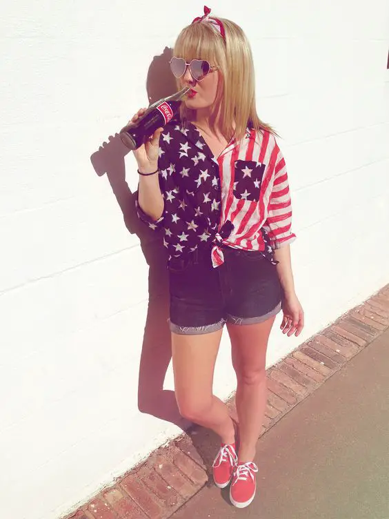 Поліпшення цього вбрання можна поєднати з шортами з високою талією або джинсовою спідницею. Уникайте надмірно патріотичних аксесуарів, щоб зберегти увагу на детальному дизайні сорочки.